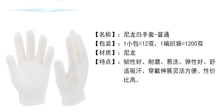 華特尼龍白勞保手套面料柔軟舒適透氣,防滑防污防手印。