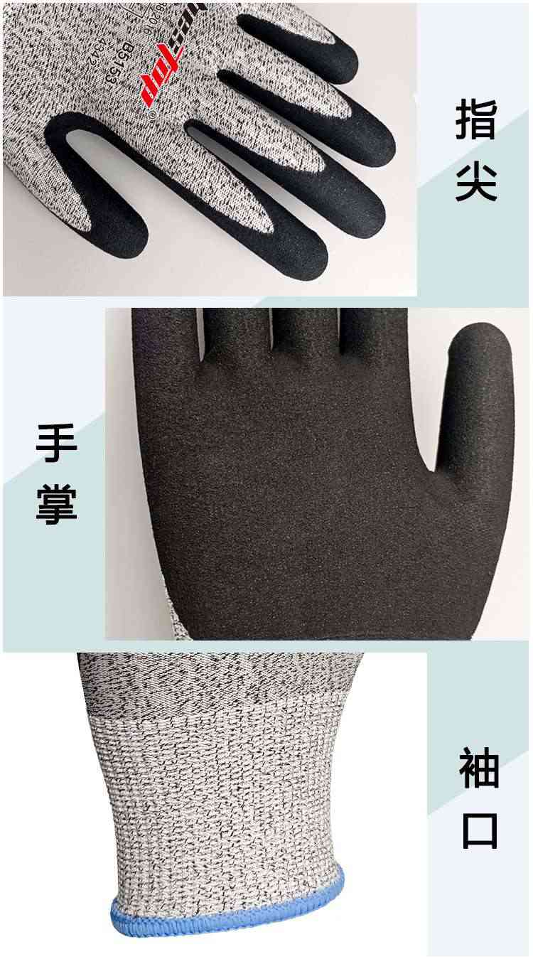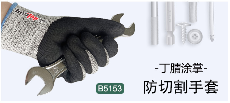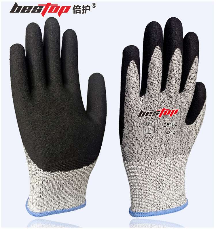 bestop倍護B5153耐磨防滑防割手套丁腈涂掌,EN388:2016防割3級,高彈力,貼合手掌,防滑耐磨。
