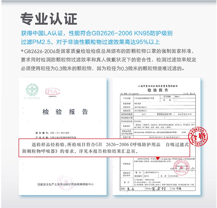 產品標準:中國LA認證(GN2626-2009 KN95級別)
