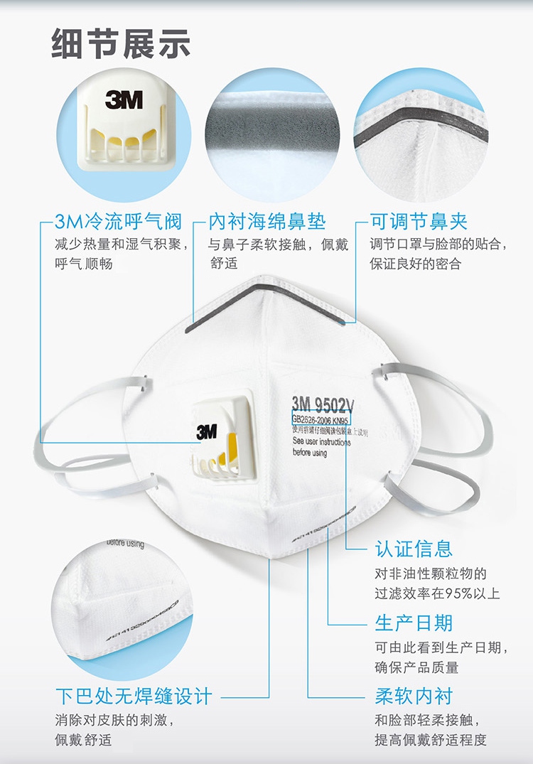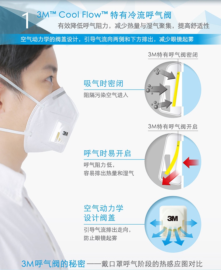KN95型3M防塵口罩,折疊耳帶式3M口罩,特有冷流呼氣閥,適合濕熱環境長時間佩戴。