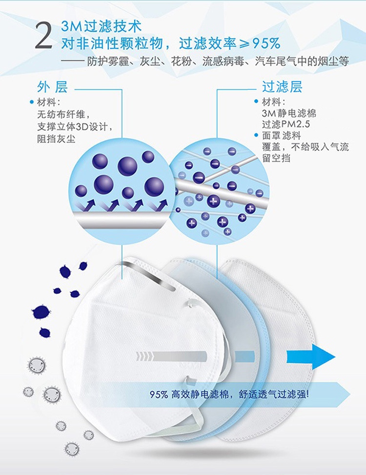 3M9502V KN95防塵口罩折疊耳帶式口罩