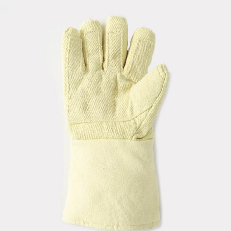 耐高溫手套材質主要面料為對位芳綸粗斜紋布,抗輻射熱。